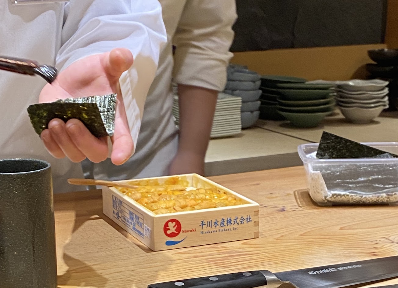 這餐吃了7貫握壽司+1個烤鮪魚捲壽司,海膽松葉蟹手捲是亮點。