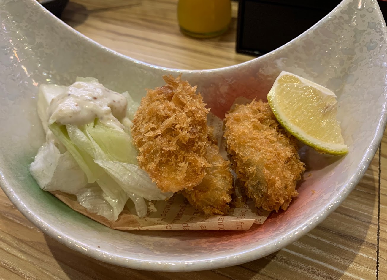 初訪在1月1日的中午,兩人用餐,沒有久等就入座吧檯桌,點了竹套餐鰻魚飯、味噌松阪豬定食、炸牡蠣,整體都很好吃,松阪豬的熟度很剛好,入口軟嫩不會太老,咬幾下入口特別有幸福感,白飯很Q,鰻魚飯醃製的的入味不會太死鹹,份量充足,吃完很飽足。