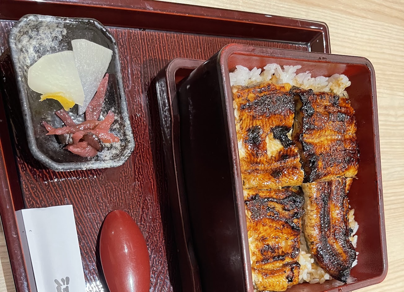 客人絡繹不絕的鰻魚料理餐廳,這次點了迷你鰻魚飯套餐,份量適合女生食用。米飯很好吃,配上其他配菜一口接一口,很快就吃完了⋯⋯