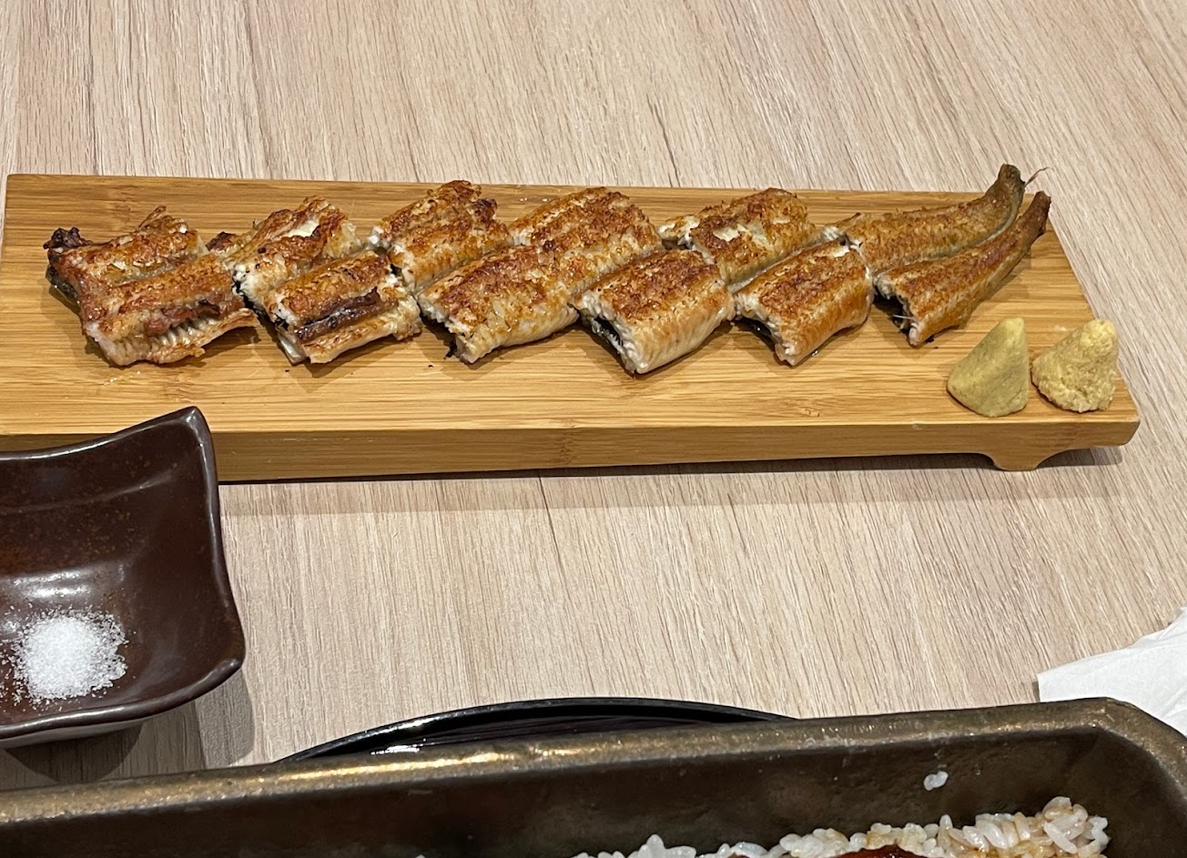 不知道是不是先前難吃到上新聞的效果,其實這次來吃表現得挺正常,並沒有烤過頭的狀態,不過殺鰻魚的刀工好像還是要加強,貌似附近的魚心都沒那麽多刺。