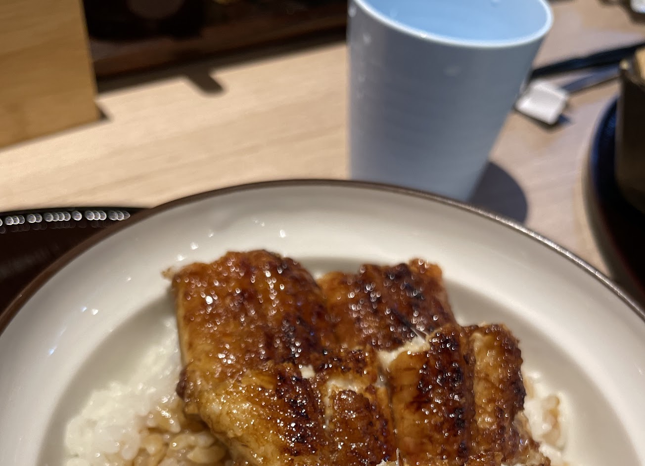 事先訂的是雛菊會席料理,生魚片吃起來很像冰很久,沒有新鮮的感覺。鰻魚蓋飯的皮完全咬不動,魚肉沒有炭香味,醬汁很清淡。甜點是抹茶冰淇淋,就一球放在小碗裡很沒有整體感。這樣價位的表現令人蠻失望,比在日本當地一般平價炭燒鰻魚飯表現還要差。
