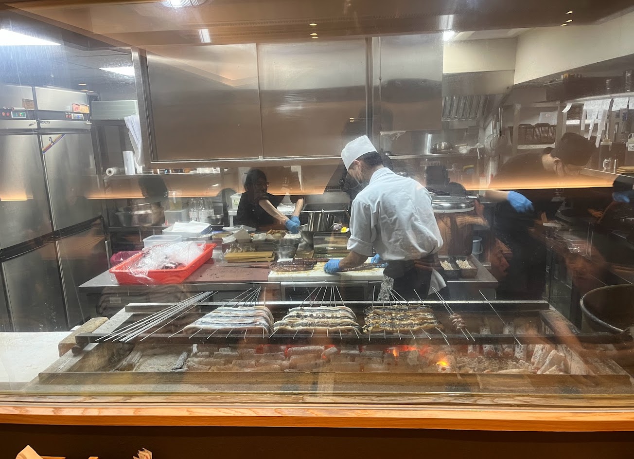 坐在吧台區還可以看到師傅烤鰻魚的過程