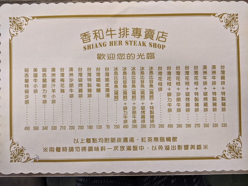 2024最新在地推薦餐廳的菜單_香和牛排的菜單、圖片