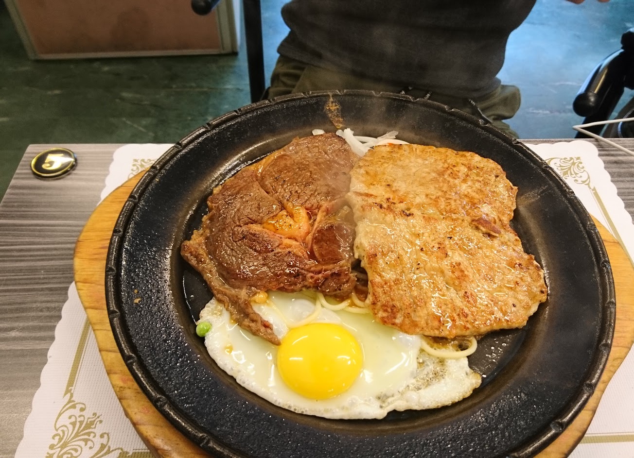 不管牛肉或豬肉都非常好吃也煎的非常剛好,本來因為不希望看到牛肉的血水而點七分,老闆娘(應該是)貼心建議牛肉幫忙切塊但作5分熟才不會肉質太老,果真這作法非常好吃!