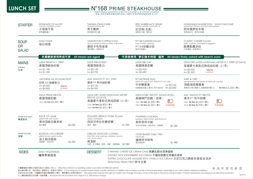 N°168 PRIME牛排館自2009年開幕以來,憑藉著優異的餐飲水平、細心的服務態度以及典雅精緻的戶外花園,說服許多美食饕客慕名而來,也因此業績連續多年在市場名列前茅,更在2019年於市中心開設分店,成爲唯一設立舘外餐廳之五星級飯店。