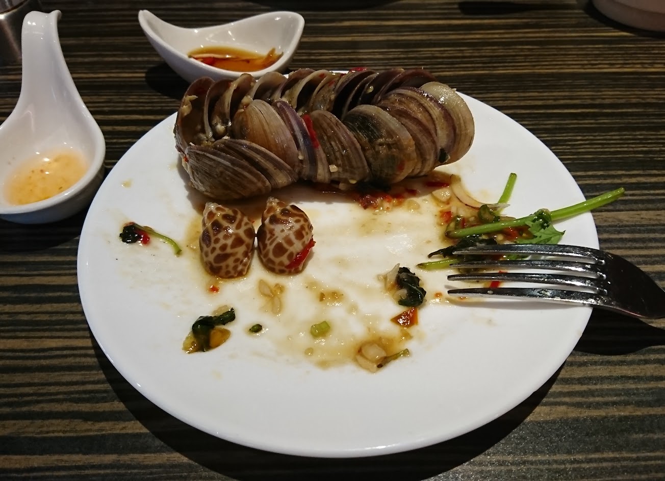 有吃到龍珠、啤酒蛤蠣、燒賣、起司條、炒飯、雞翅、皇帝菜等,開胃菜有大薄片、羊芋泥等,生菜新鮮,水果也很甜。湯有兩種中西各一,濃湯跟雞湯