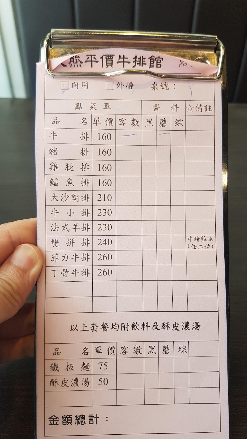 我點的是沙朗牛排260 比一般鐵板的厚切還厚還好吃 缺點是沒有紅人牛排醬 強烈建議增加