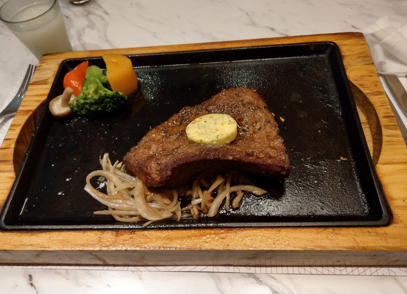 點了法蘭克牛排,軟硬適中,五分熟黃金賞味。