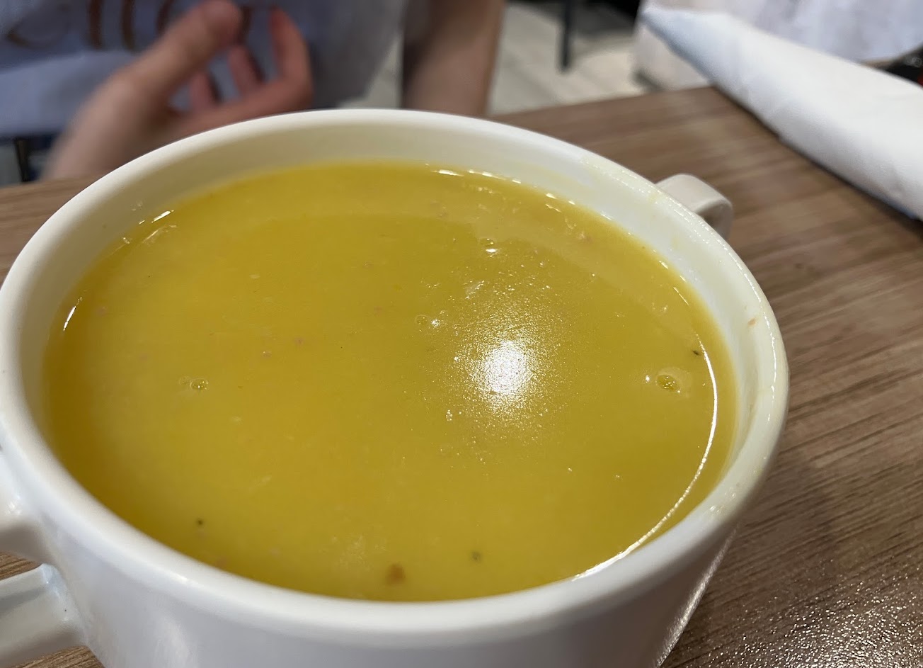 酥皮濃湯等了滿久的,應該是現烤的關係,外觀很漂亮,外皮口感也很酥脆;融合到玉米濃湯中也很美味(燙!)唯獨玉米湯本體有點太甜了