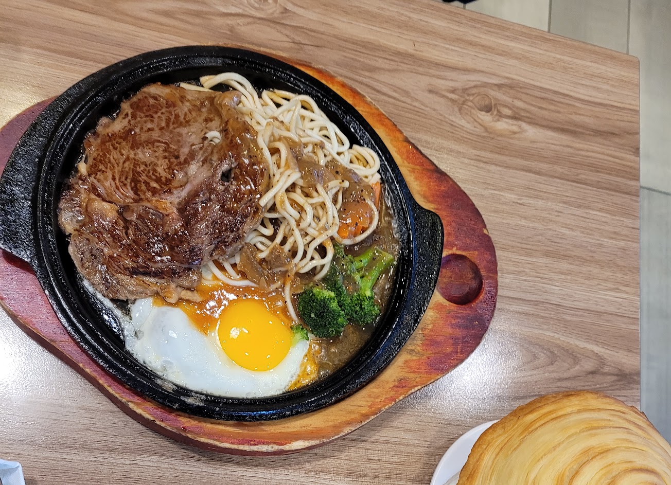以這價位來說牛排尚可,熟度不均也不好要求太多,醬汁個人是吃不習慣,不太像蘑菇醬也不太像黑胡椒醬,麵條是用白麵也不合個人口味。可能現場吃會比較好吃吧,這種牛排選外帶可能也是我這個人的選擇失誤。