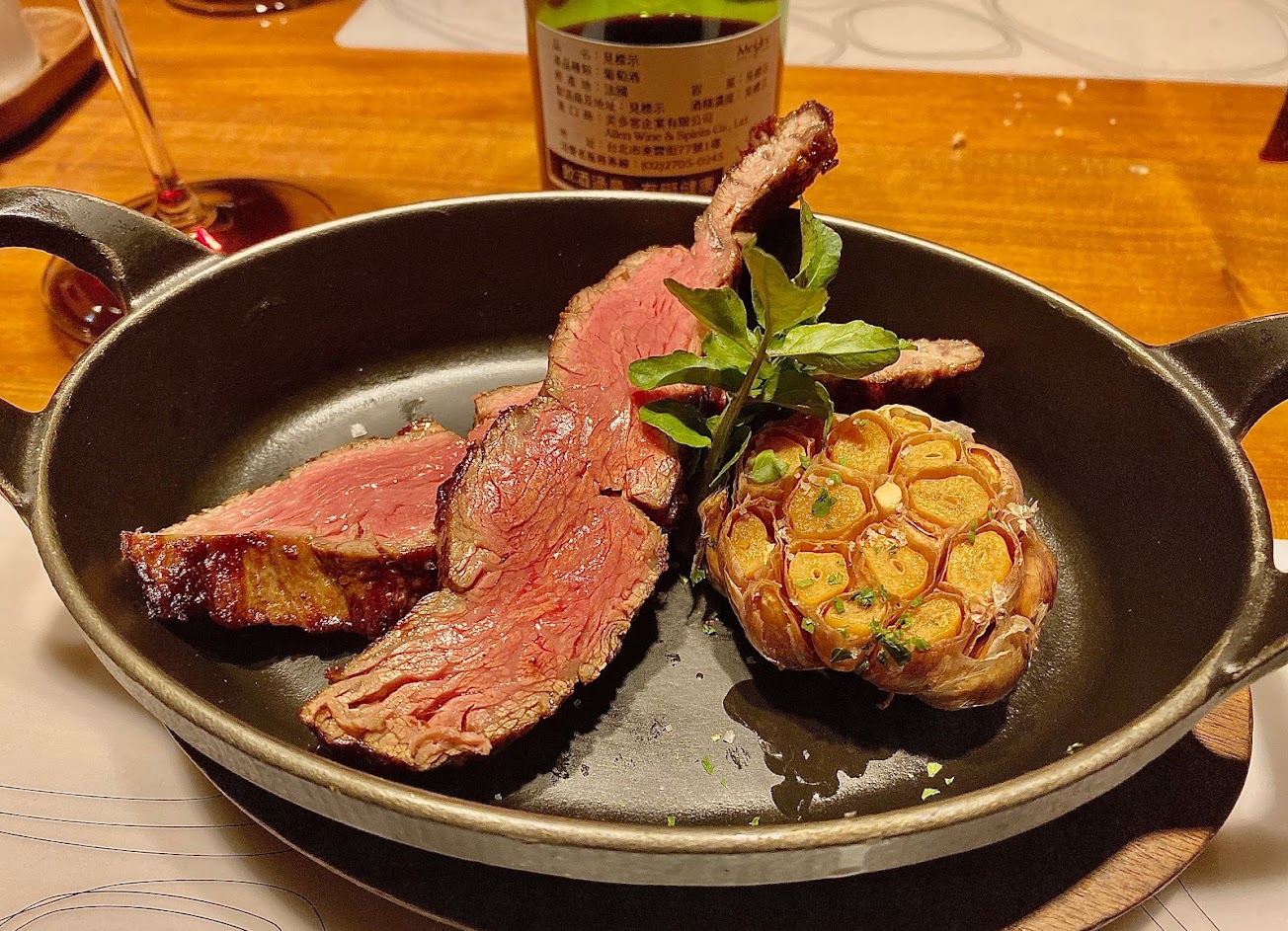 蘋果塔是我人生至今吃過最驚艷的(草莓開心果跟生日蛋糕就真的不行,太甜膩)、肋眼菲力$1280及和牛紐約客$2600都不錯,但性價比來說下次會點肋眼菲力,另外,總覺三分熟很像逾五分了?