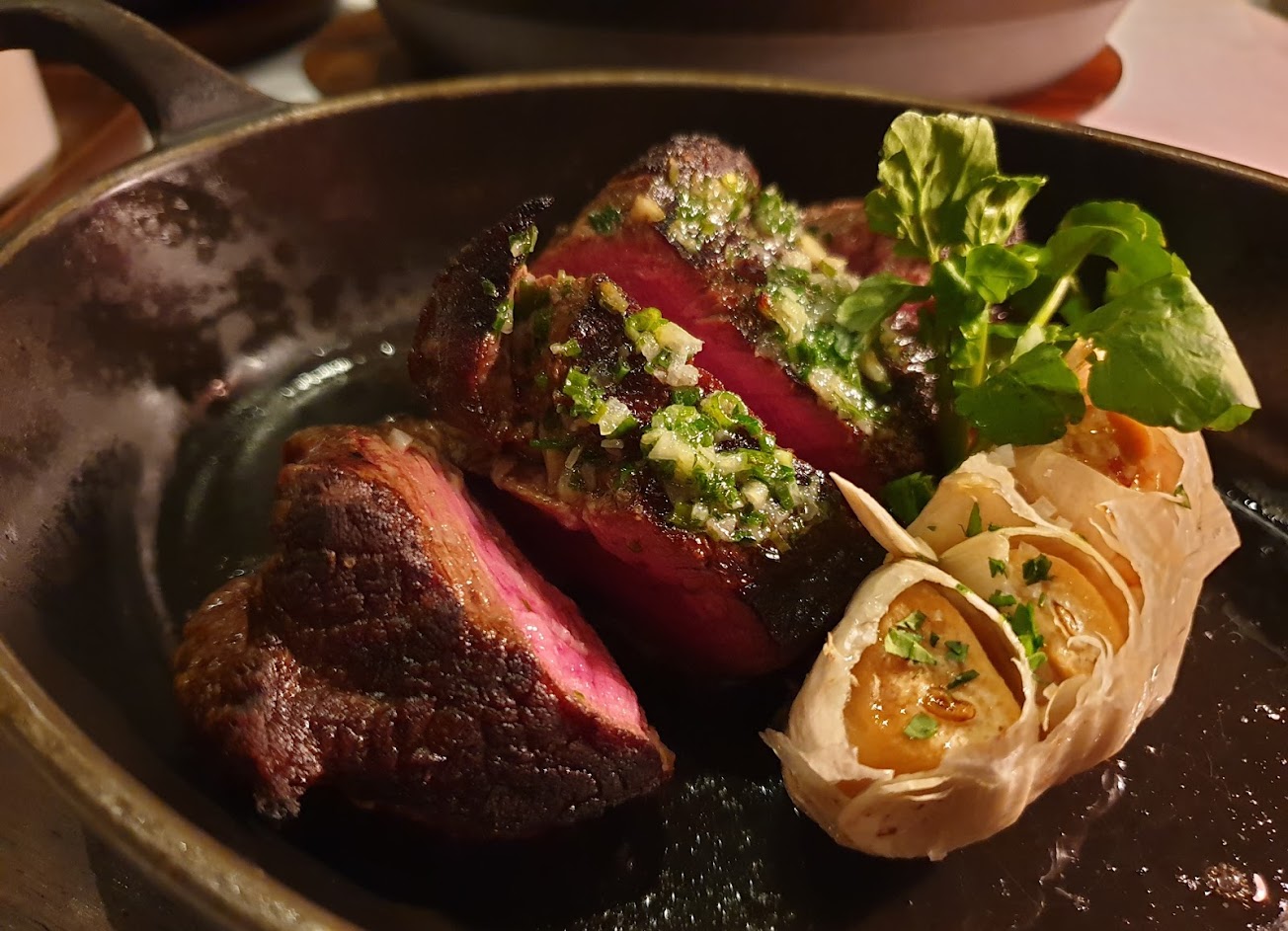 用餐氛圍很好、服務員很親切、主餐不管是日本的菲力還是羊排肉質都很嫩也很鮮甜,不過在前菜的烤馬鈴薯上的酸奶可能是吃不習慣有點不太行,整體而已是一個很棒很喜歡的用餐體驗