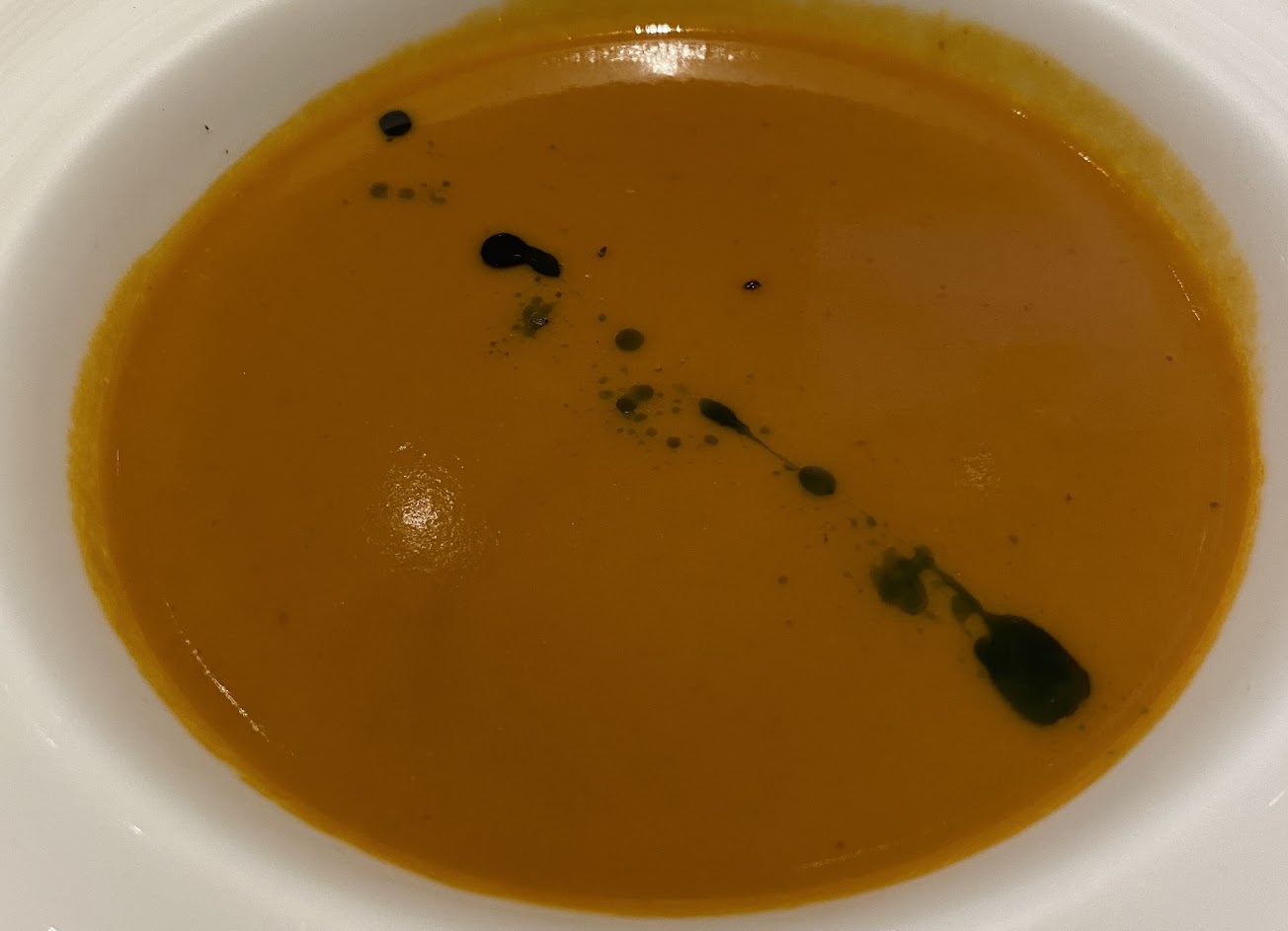 因為米其林慕名而來,開胃菜、主餐都還不錯,燻番茄濃湯我覺得是最好喝的湯品,甜點及招待甜點有點過甜,整體評價還算可以,近年高檔餐廳大概就走這種路線;不過建議服務員專門服侍一桌就好,常常一個問題問了兩次;廁所的洗手乳是用Aesop的也非常高級。