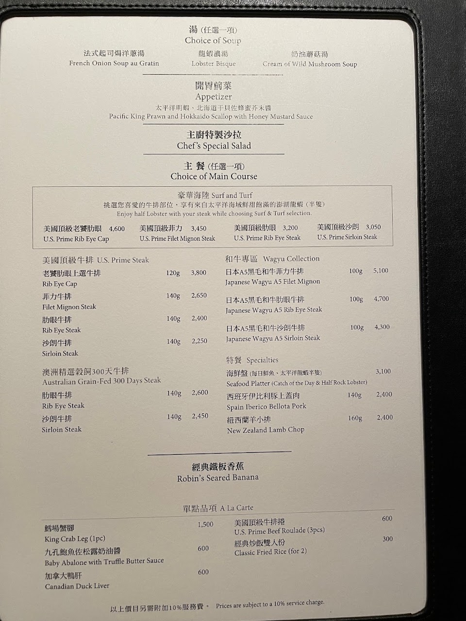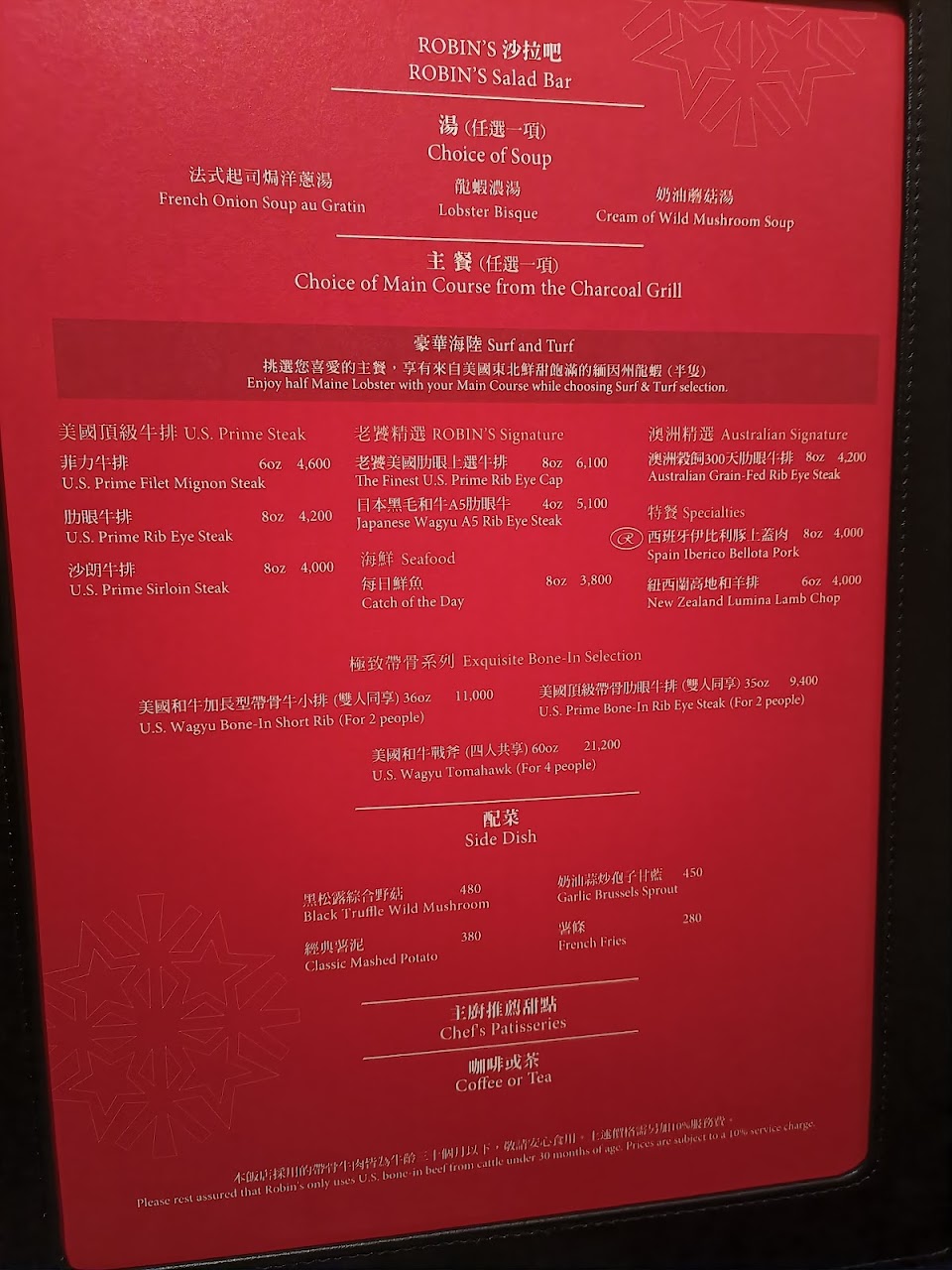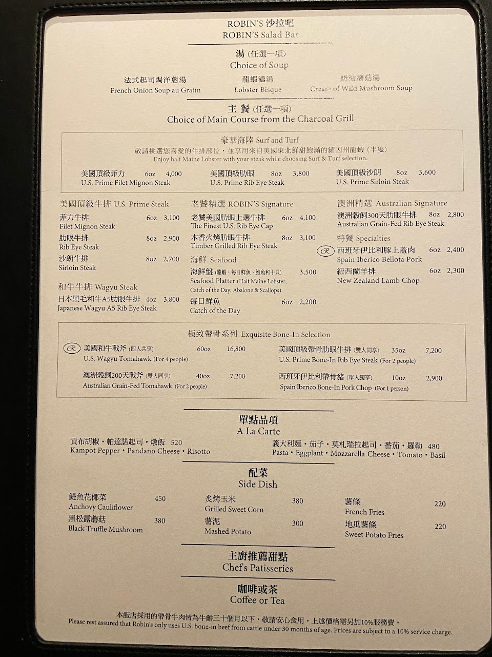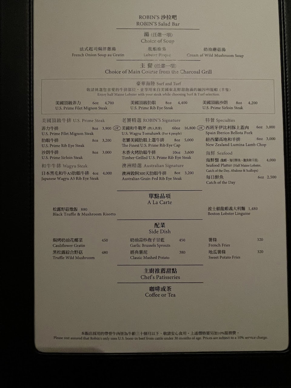 2024最新在地推薦餐廳的菜單_台北晶華酒店- ROBIN’S 牛排屋的菜單、圖片