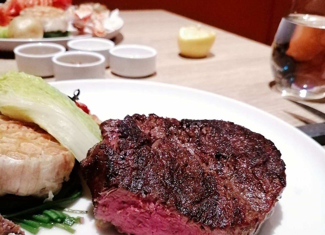 跟家人來慶生,牛排很好吃!龍蝦濃湯也有調整過口味,不會像國外那樣死鹹。沙拉吧真優秀,蔬菜都很新鮮。我自己點了海鮮盤,非常滿意,我有留下麵包給的奶油,塗在龍蝦上一起吃。甜點吧在改裝後更厲害了。