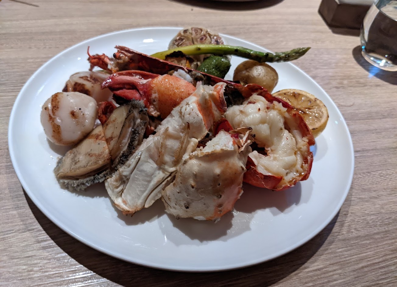 沙拉吧是真的不錯,牛排也好吃,龍蝦就建議不要點了,一點都不鮮甜,龍蝦濃湯腥味很重,服務人員的服務太好,沙拉吧還沒吃夠就把吃沙拉的餐具收走