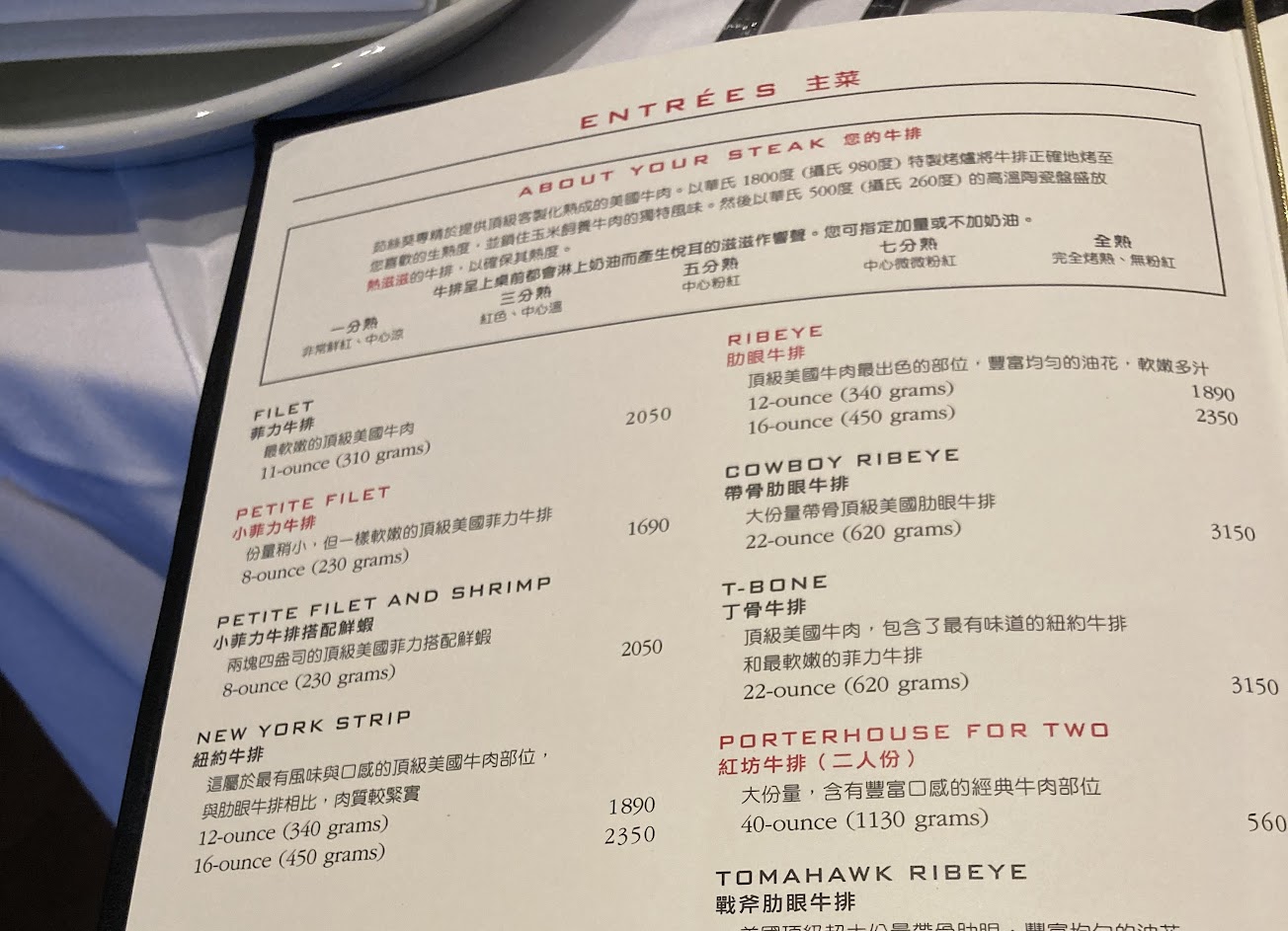 點了兩個十盎司肋眼套餐