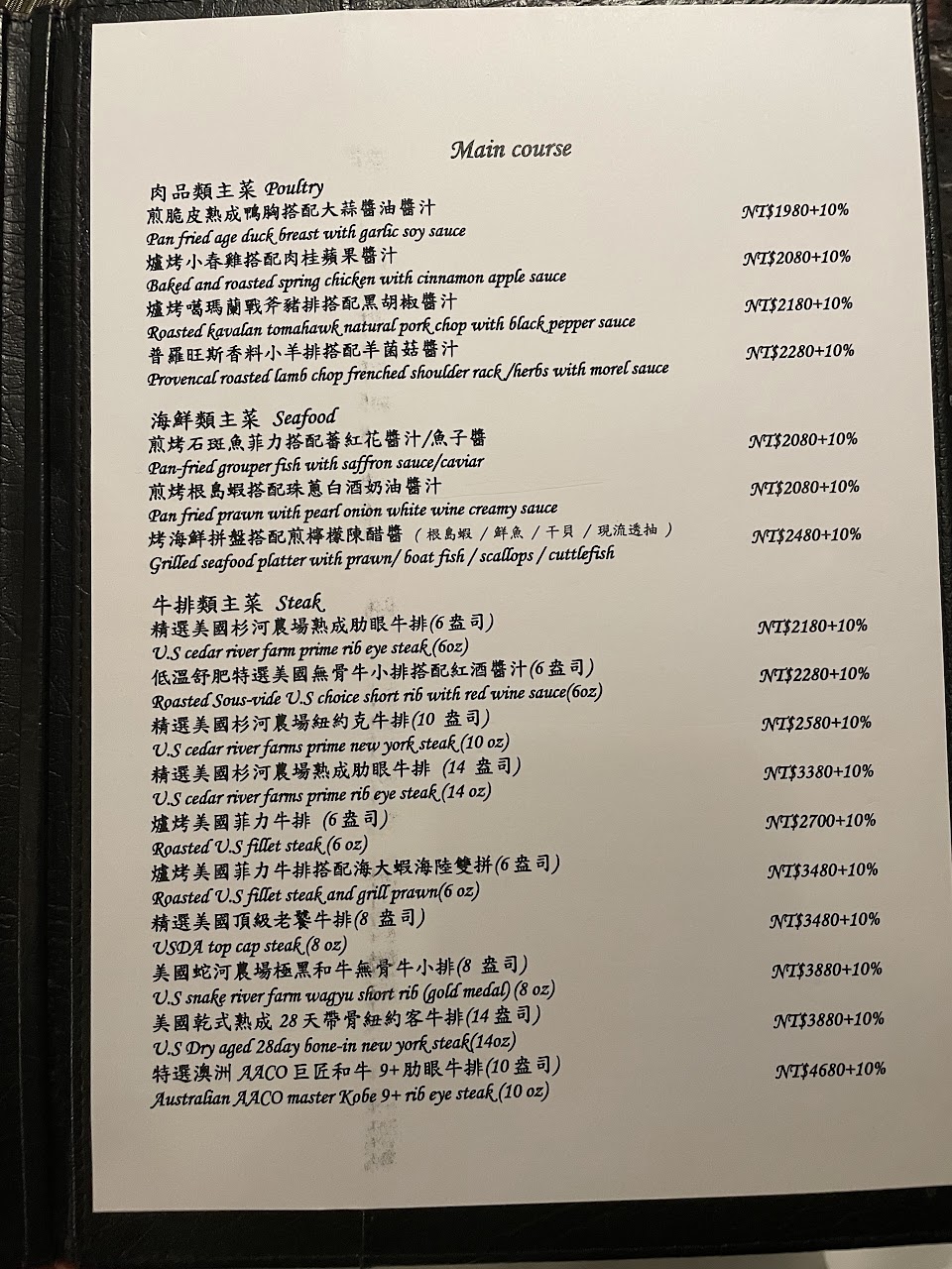 2024最新在地推薦餐廳的菜單_圓山大飯店-圓山牛排館的菜單、圖片