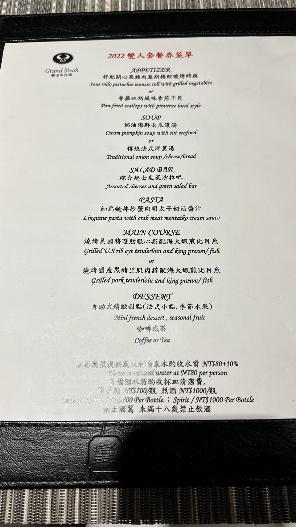 很剛好購買了999元的餐券,原價1380+10%,買券非常的划算,經理告知12月會回覆沙拉吧!所以推薦大家買券用完,但牛排我們點5分熟,實際熟度已經七分熟了,七分已經有點過硬,所以廚師有待加強,其他部分以及用完環境都覺得很棒。