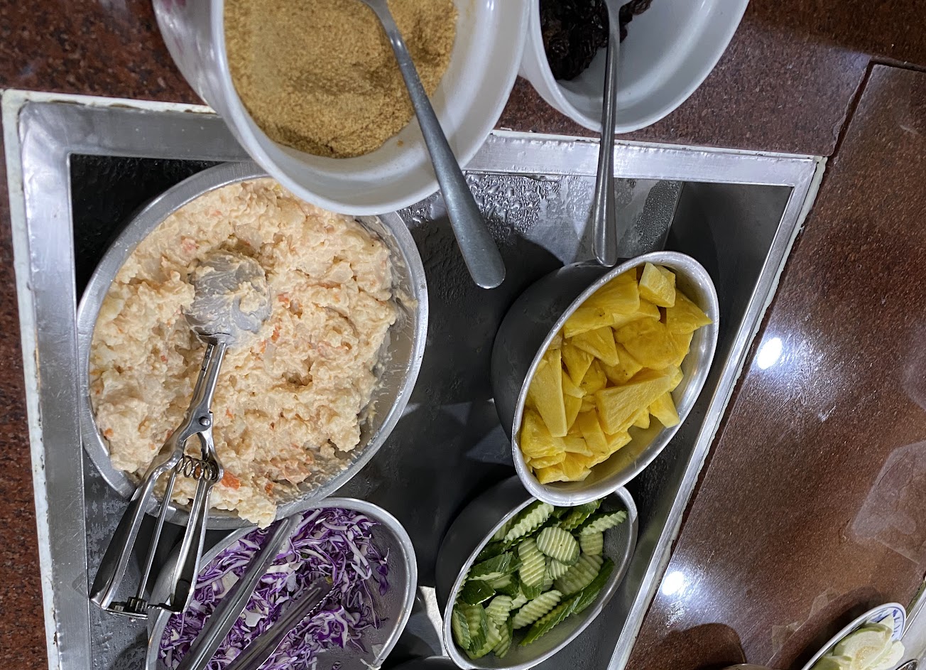 沙拉吧 生菜 沙拉 區 水果小菜沙拉 鹹湯及玉米濃湯 炒飯 小菜 炒高麗菜