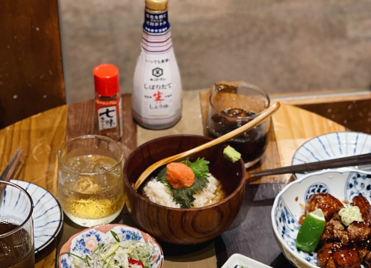 炸雞好吃必點,松阪豬也棒,半熟鮪魚也推,茶泡飯是高湯底,適合台灣人口味,氣氛很棒,適合下班後小酌,真要挑就是冷氣不夠強,整體來說非常棒!