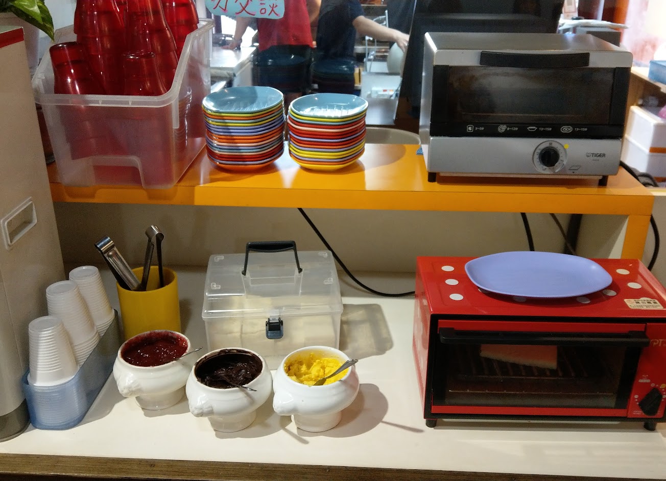美中不足是油煙味很重,有小美冰淇淋、濃湯跟豆腐湯、滷肉飯、吐司(巧克力、草莓、奶油)可選