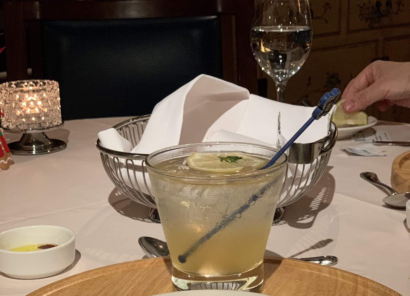 本次是來體驗歐華酒店1泊2食。主餐是12盎司21天乾式熟成肋眼牛排,調酒為新加坡司令,前菜任選2種,分別為蘑菇濃湯與根島蝦,甜點是香茅烤鳳梨+熱美式。
