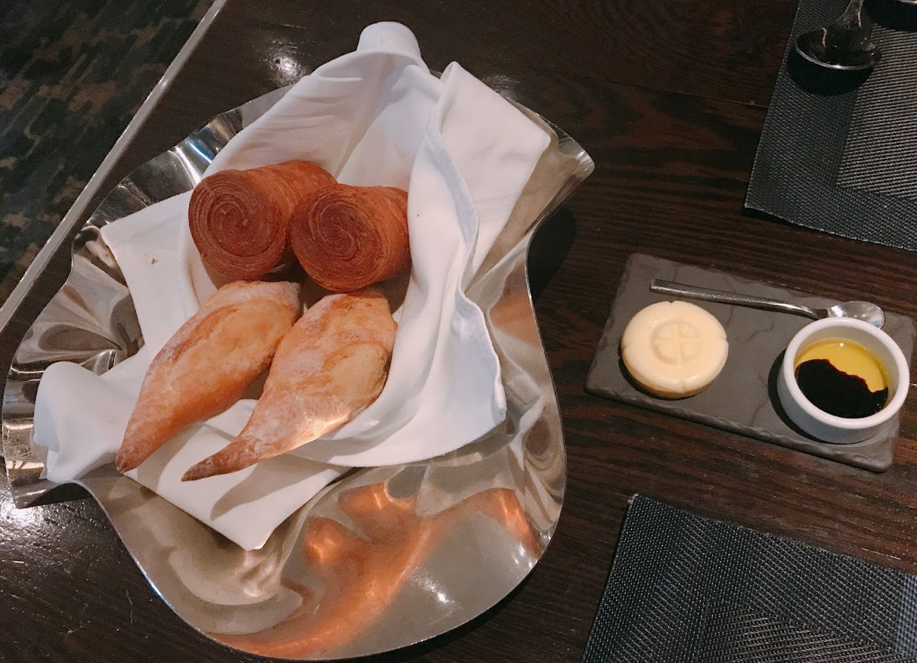 一開始先上的麵包有 #楓糖可頌 和 #牛角麵包