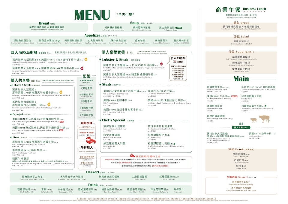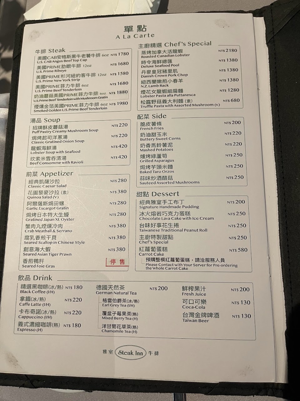 2024最新在地推薦餐廳的菜單_雅室牛排 大直旗艦店的菜單、圖片