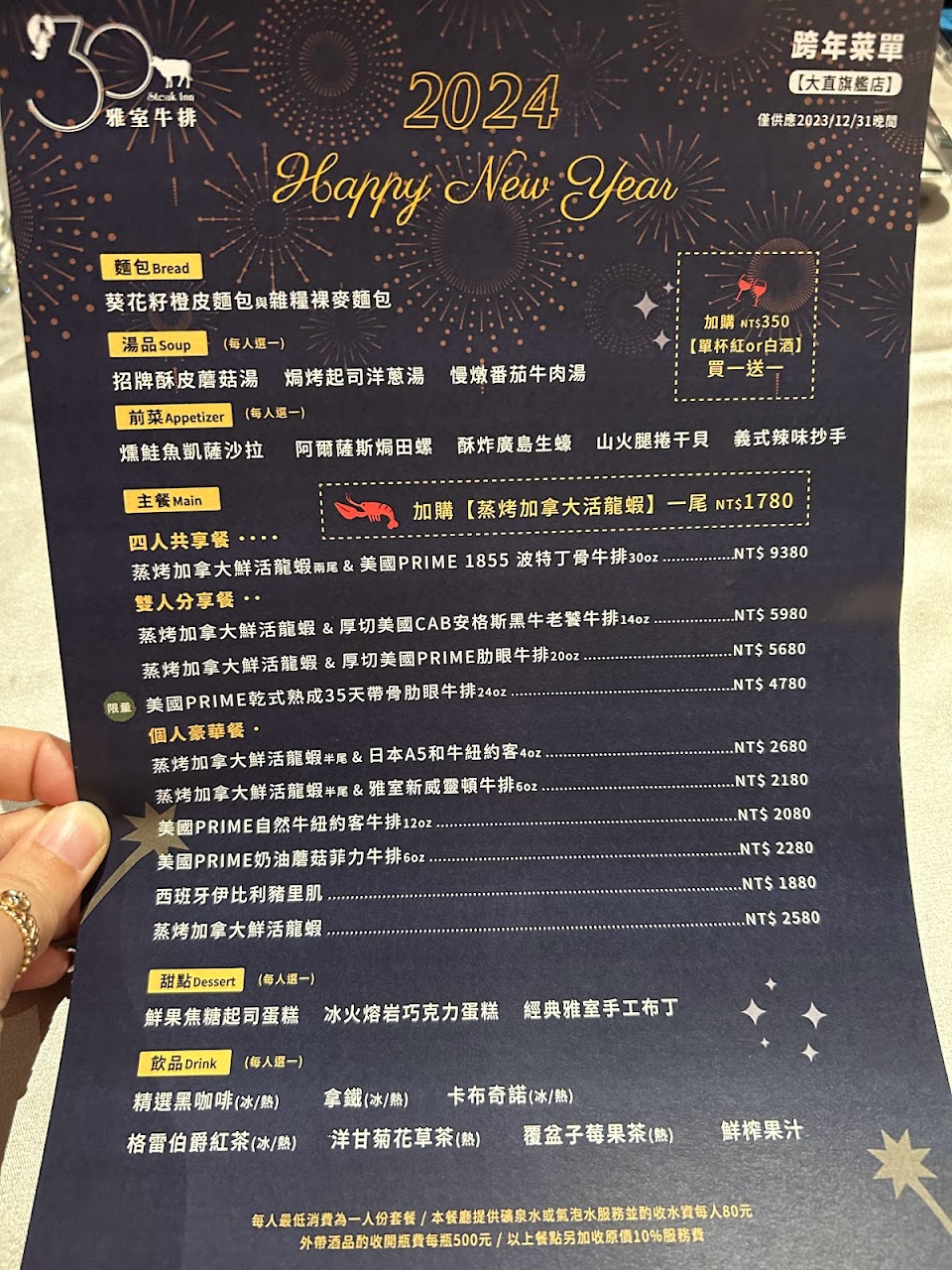 2024最新在地推薦餐廳的菜單_雅室牛排 大直旗艦店的菜單、圖片