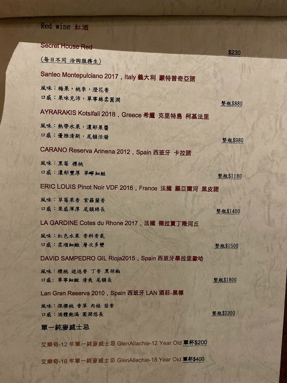 菜單價格不算平價,酒水還不錯,