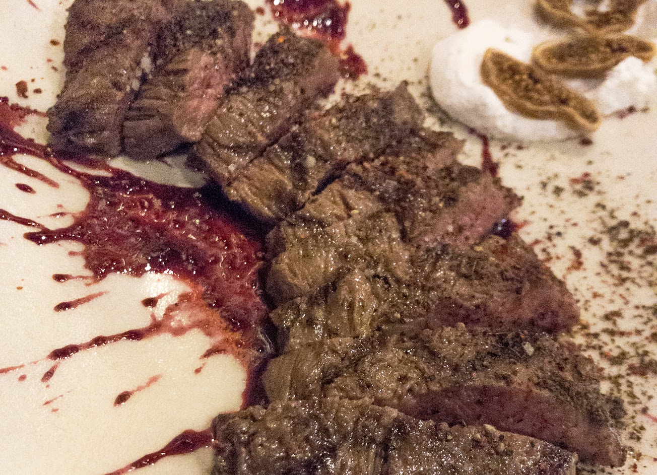 雙人套餐可以選擇兩份主餐,這次選擇了16oz肋眼+羔羊肉,肋眼熟度恰到好處,搭配的綠胡椒醬也是一絕;盤子雖用磁盤但也有溫盤保持食材的溫度,相當細心。最讓人覺得失望的是薯條,也不是說使用薯條當配菜不行,而是這一眼就看得出來是冷凍食品,不論你分量給的多大都無法彌補這嚴重的缺失,讓優秀的牛排主餐價值大幅下降。進擊的山羊,口感柔軟不到爛,配上莓果醬或中東式辣醬都是一絕,不過出現第三次的羊乳酪醬已經讓我覺得有點崩潰。