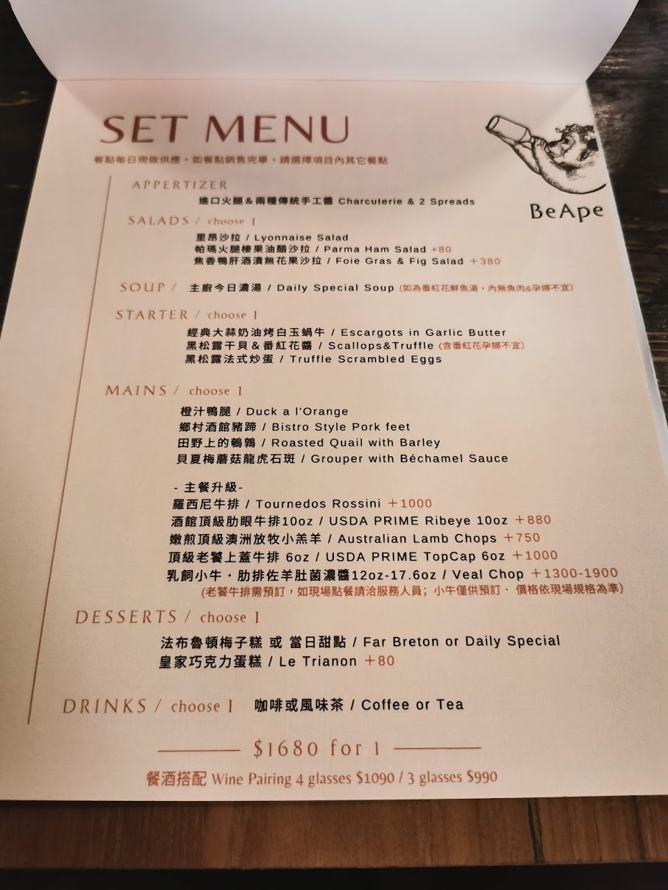 菜好吃不用說,服務也很到位,各種貼心讓我們能好好享受當天的晚餐,下次法國菜首選還是BeApe!