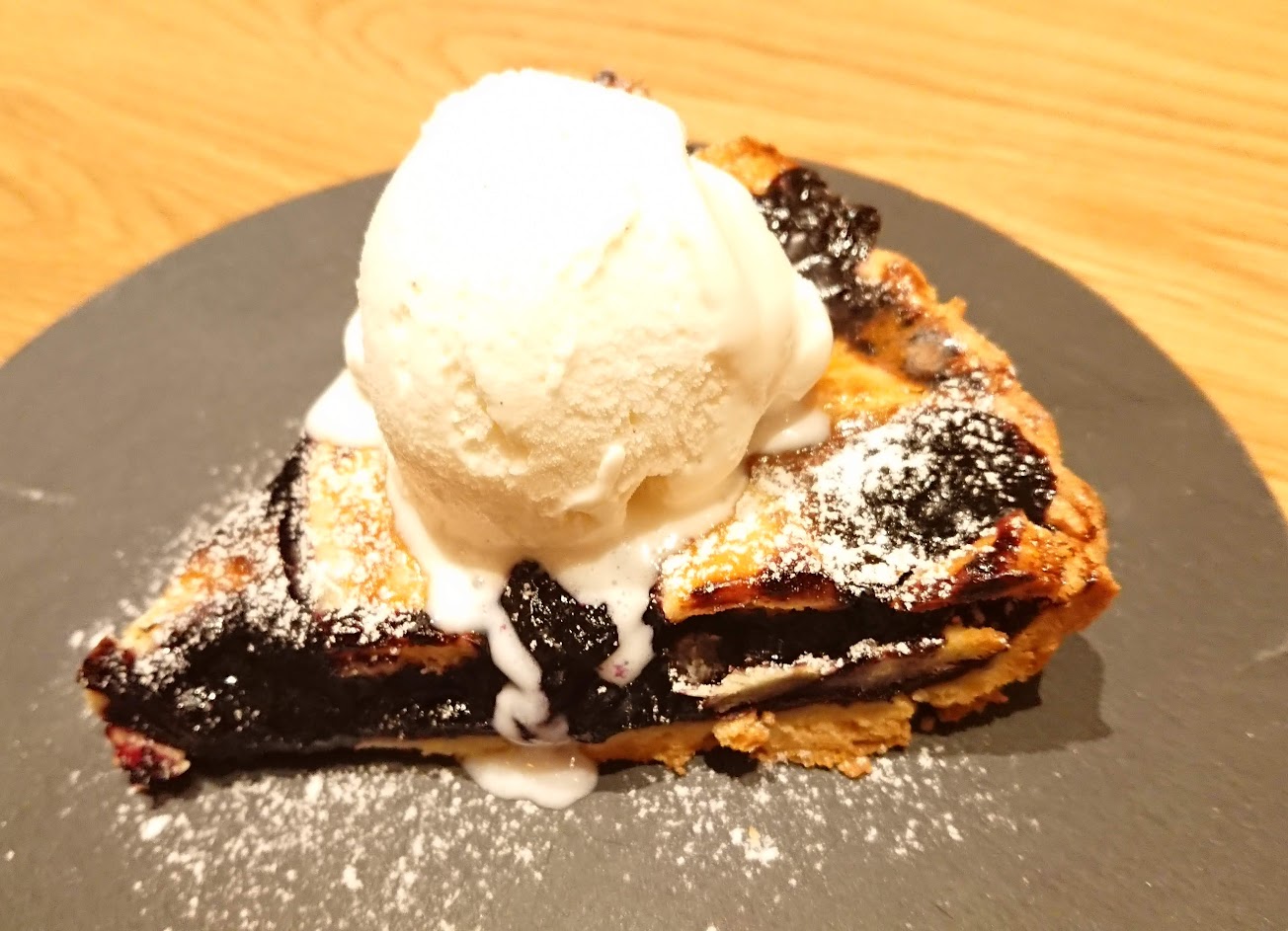 -藍莓派:店家會稍微加熱配上香草冰淇淋,派皮很酥不油,藍莓醬不會太甜,很優秀的一道甜點