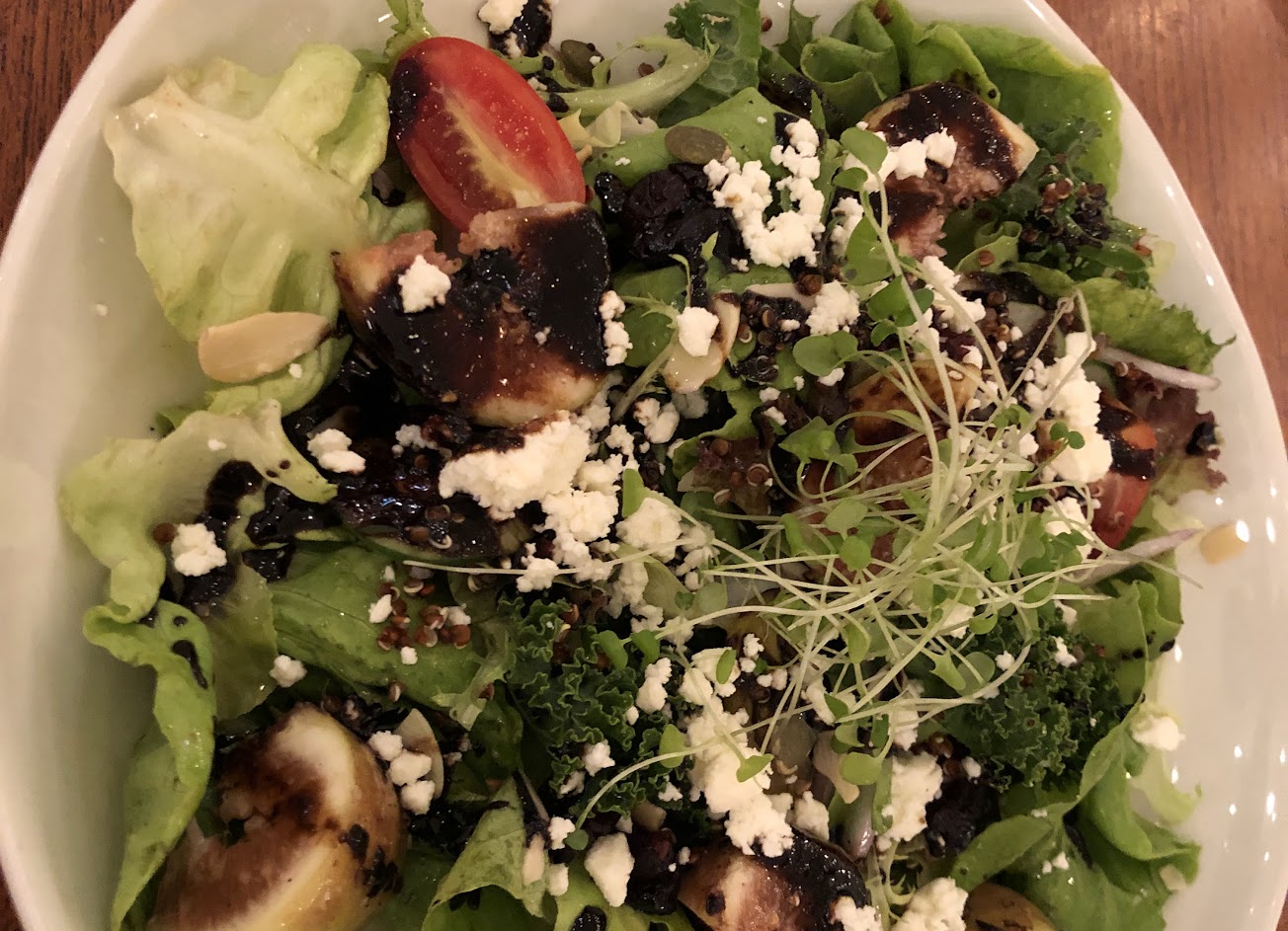 「碳烤酪梨奶油萵苣沙拉」還是好吃的,健康美味。「摩洛哥無花果高纖沙拉」大受好評,也是健康!