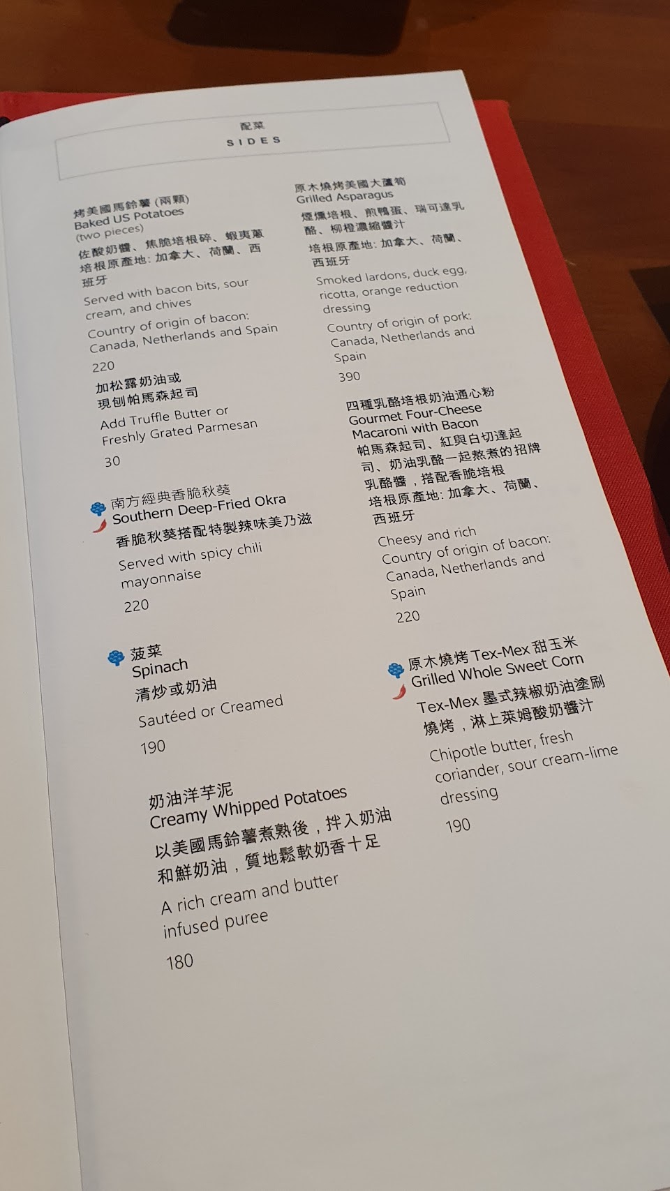 這邊炸雞的裹粉非常好吃。不會太厚而且味道很夠。隨炸雞付的沾醬也很好吃。牛排16oz 1800的價格可以接受,主要是品質很好,炭烤的味道搭配bbq刷醬我認為cp值比Ruth’s Chris / Morton都高。以會會常來。