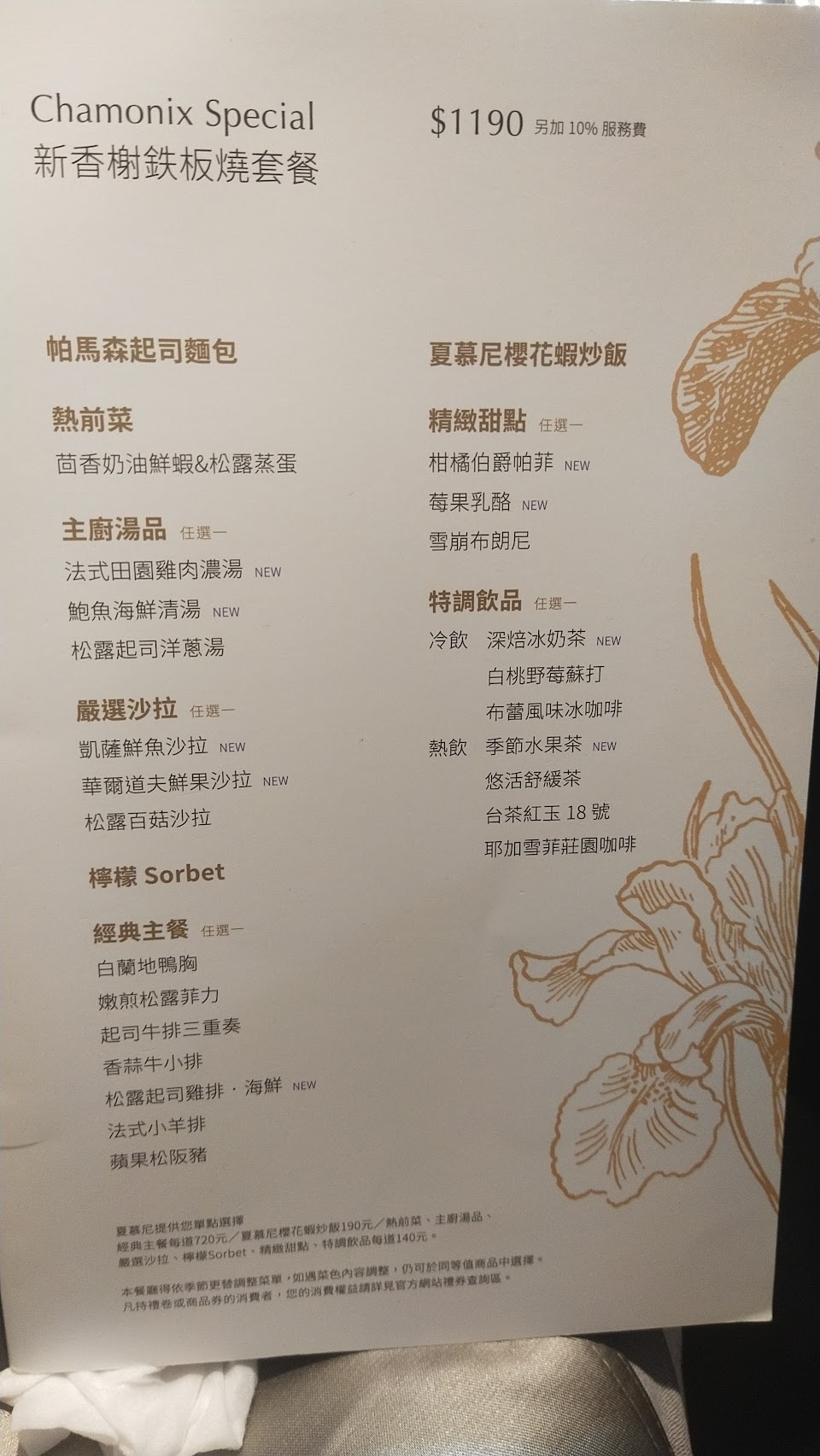 2024最新在地推薦餐廳的菜單_夏慕尼新香榭鐵板燒 台北中山北店的菜單、圖片