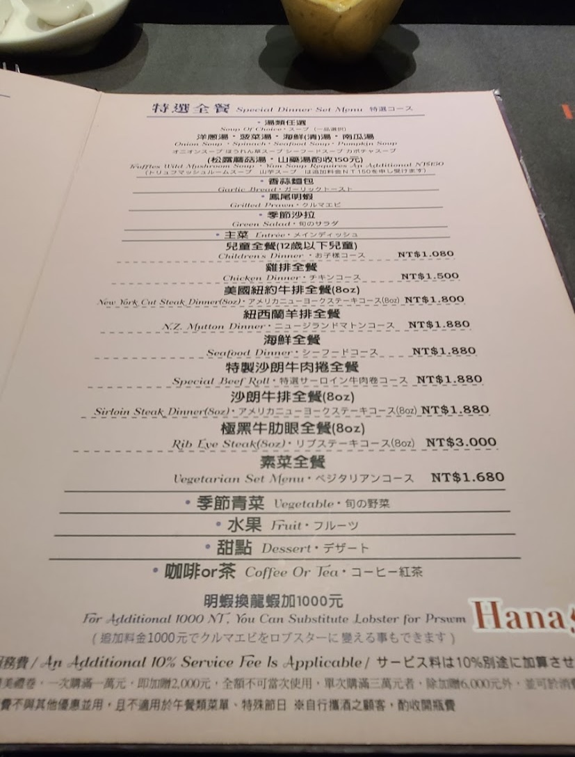2024最新在地推薦餐廳的菜單_HANA錵鐵板燒餐廳的菜單、圖片