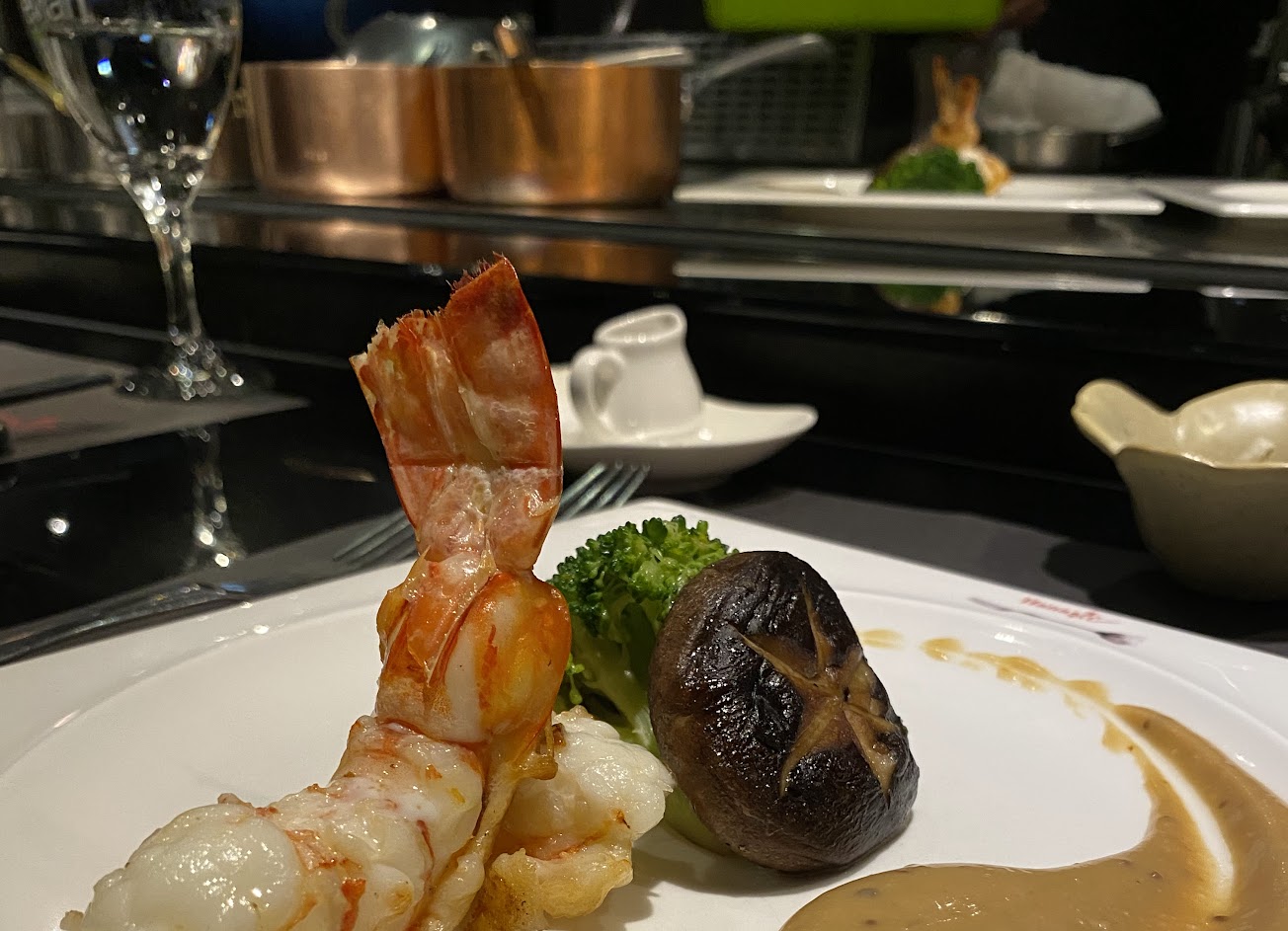 個人是覺得沒有需要換龍蝦,因為光吃他的乾煎明蝦就已經很滿足了,搭配佐料口感非常豐富,唯一可惜的點在於花椰菜調味有點不足,口感上相對有些出戲。