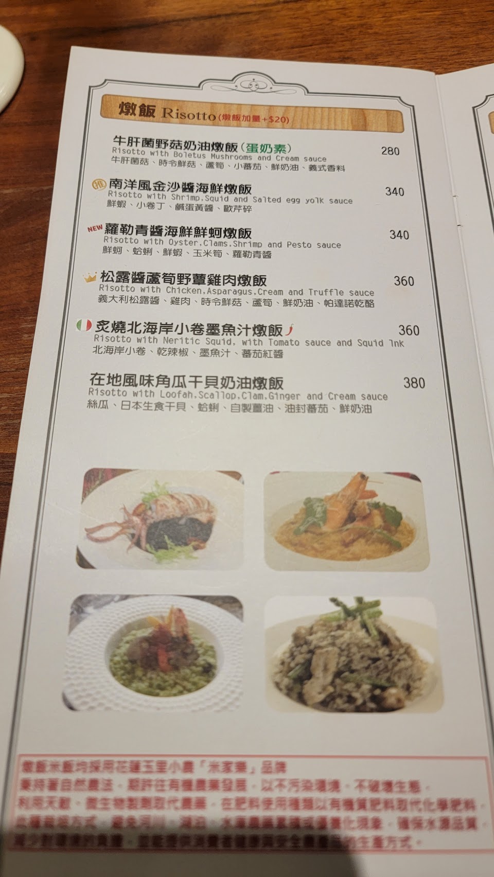 其實我今天最想吃的是油封鴨腿青醬燉飯,這是我研究了菜單之後最想吃的食物,結果他停售,但我最討厭最討厭最討厭的餐廳世界第一名就是有餐點沒有,雖然在點菜之前就發現了,但還是覺得計劃都亂了。