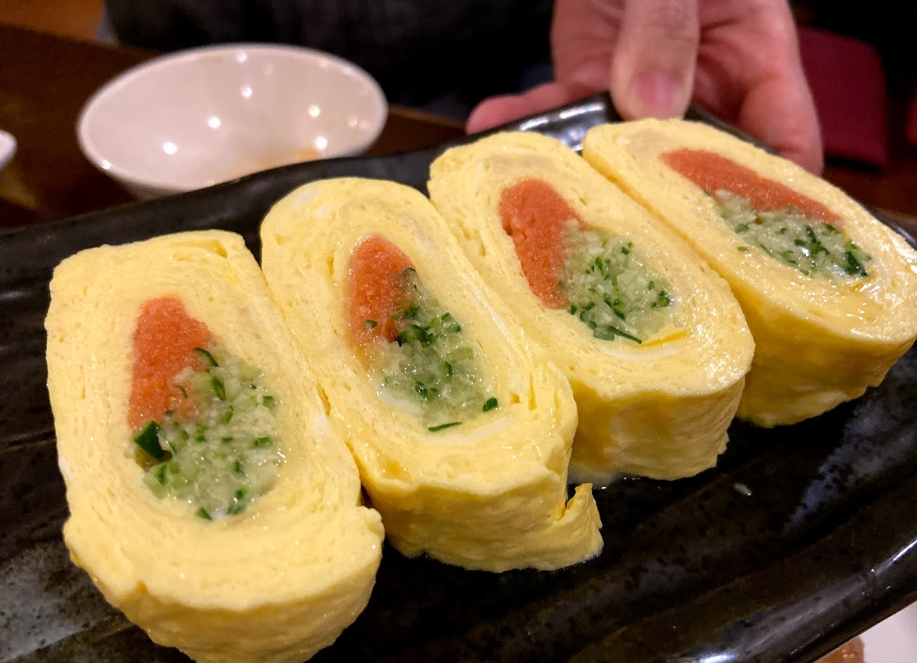 軟嫩多汁的鰻魚蛋捲/柴魚菠菜蛋捲熱熱吃、明太子炒花枝冷熱皆順嘴、爽口涼脆的馬鈴薯野菜沙拉、超下酒的鹹蛋炒山苦瓜都是必點的菜,愛吃馬鈴薯的人有超多菜色可以選擇。可以喝的話原料是蕃薯的芋燒酎,或經典的梅酒都大推薦,可寄酒。