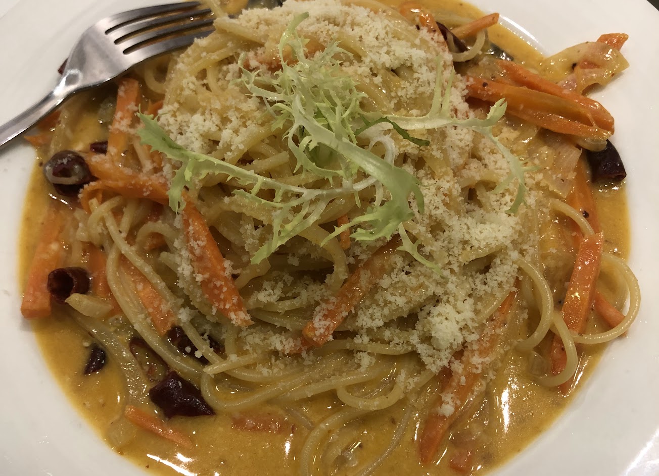 二訪!這次點了香辣剁椒義大利麵跟羅勒海鮮飯。