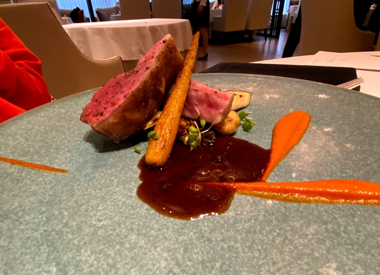 我點的是乳鴿 我先生點的是A5和牛紐約客