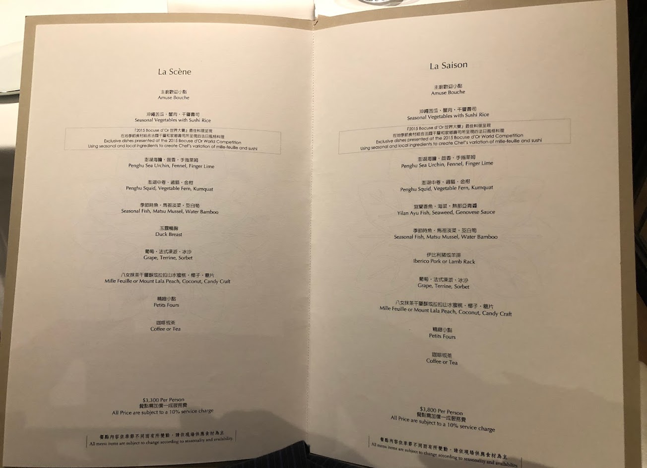 評價就如主廚於menu上所提的,以在地季節食材結合日式及法式料理的方式,可以嘗到時令的鮮味及食材的原味,讓品嘗者對食材本身及引出原味的料理方式又多了一層尊敬。