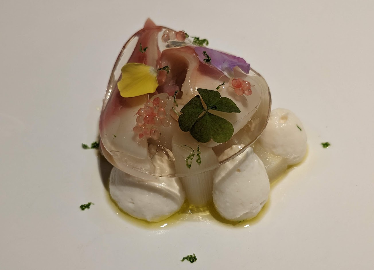 白蘆筍和北寄貝入口味道完美結合 吞嚥時萊姆的味道又顯現出來 非常棒