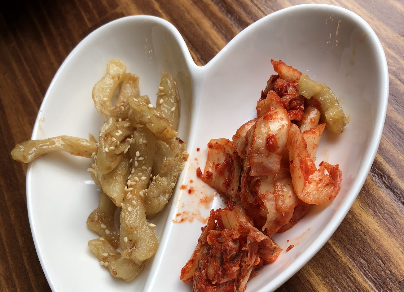 一開始門外的裝潢有真的到韓國的感覺,但是一進餐廳真的嚇一大跳,以為是到了某個婚宴現場的尾聲,整個現場亂而無章,也沒有主動招待,站了一下才有服務生幫忙喬出來一個小位子(其實不懂為什麼不安排在吧台,吧台位子還蠻空蠻大的),但位子太小,又太接近另一組大組的客人,也太接近廚房及一團在換穿韓服的客人,整個動線很亂、也非常的吵雜,導致很難讓服務生注意到我們要點餐及其他需求。但老闆娘很貼心,怕我們太冷,主動把我們頭上的空調調小,聽到我們因為另一組客人太過吵雜想換桌,二話不說幫我們準備,甚至親自撿起垃圾,、親力親為十分用心,拳頭飯十分有身在韓國的感覺,口味中規中矩,覺得價位有些高。老闆娘招待的小菜甜不辣、泡菜很好吃,至於大醬湯鍋跟在韓國吃到的有些不太一樣,似乎是辣味增調成,算是偏台式口味。年糕湯鍋有點傻眼,年糕整個煮過頭太軟,湯頭有用心用雞湯煮過,但看起來像是非常多蛋花的蛋花湯加一堆豬肉片及年糕,覺得可以在思考其特色。