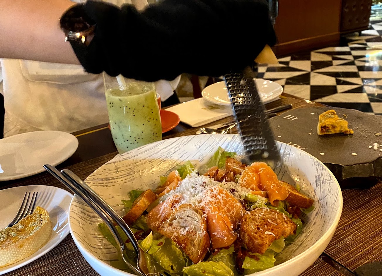 仍然有點冷凍味,調味算重所以失去了鮮甜感;附餐甜點應該是熱門選項,入口不會甜膩,咖啡好喝。
