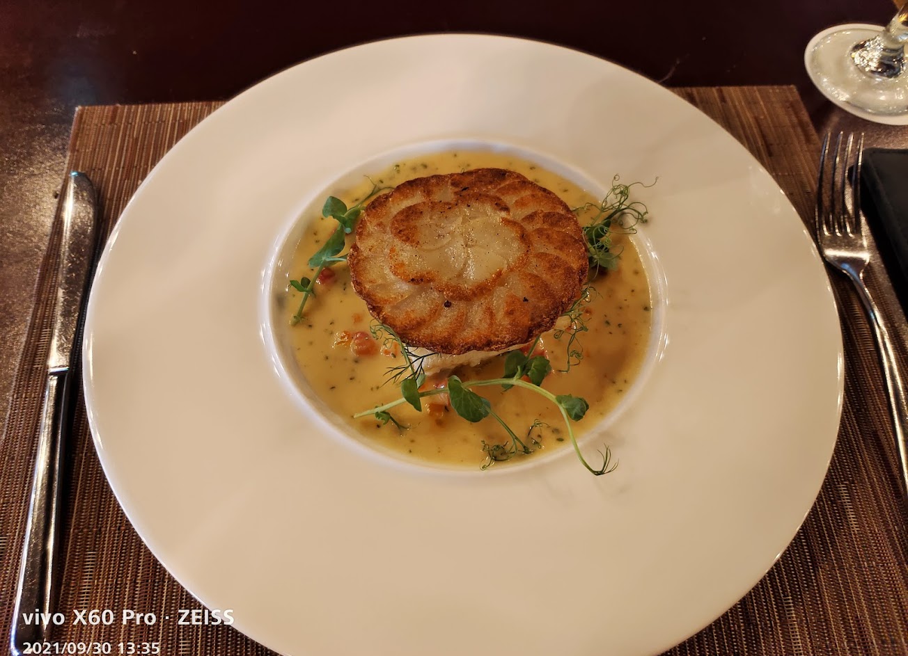 疫情期間來了兩次,對於餐點及服務在這樣的時期沒有受到影響感到相當難得,今日點了油封鴨腿,是我吃過最好吃的作法,鴨腿入口就有濃濃的香味,軟潤入味,甘貝魚子醬濃湯、烤田螺、諾曼地蘋果塔 每一道都很滿意,服務人員Sharon 才20歲卻已有熟練及貼心的服務