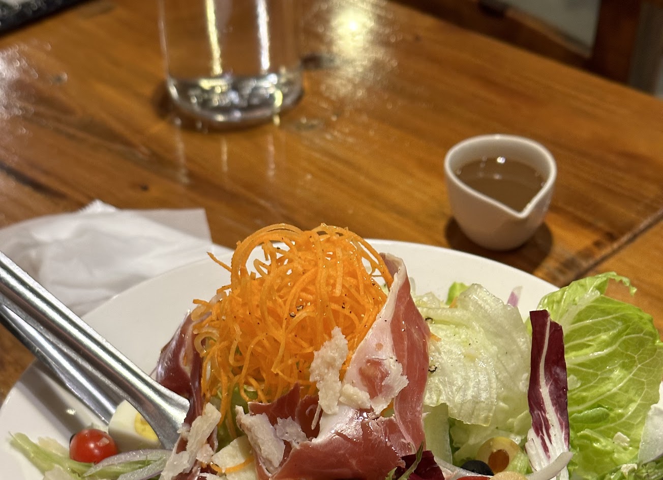 牛肉的部分點5分熟,但我覺得偏硬沒有到很好吃,沙拉一般般,最好吃的就是芝士球了,一開始吃沒有什麼味道,但越咀嚼會越香,很適合配酒。