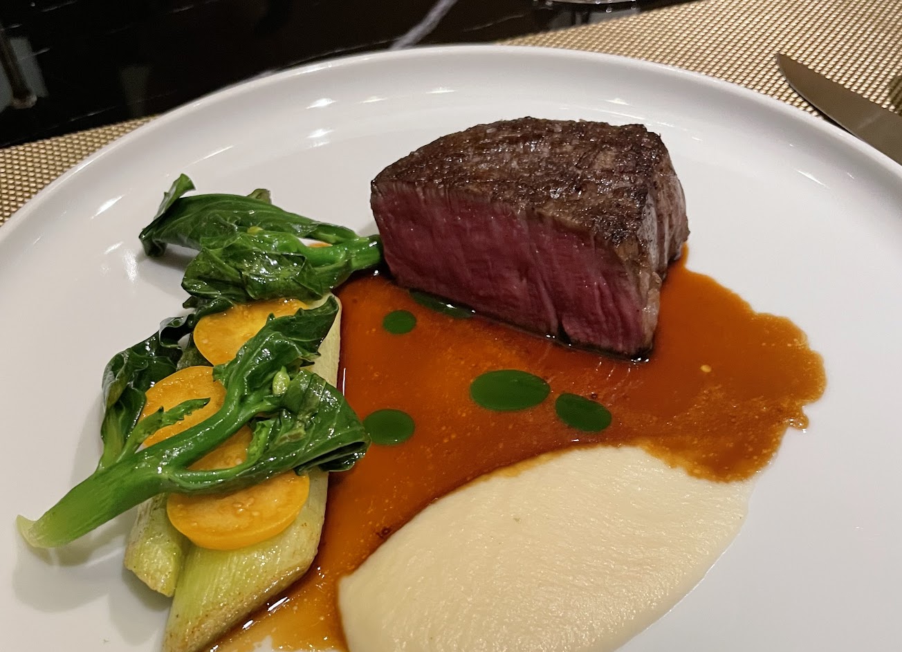 餐廳氣氛,服務都是極佳,此季餐點最愛創意與味道濃郁兼備的豬肉+蔥與軟絲和有著桂花和清酒迷人香氣的甜點。過去套餐有較多的海鮮和有一道鮮魚(主餐不算),但本季沒有是較可惜之處。